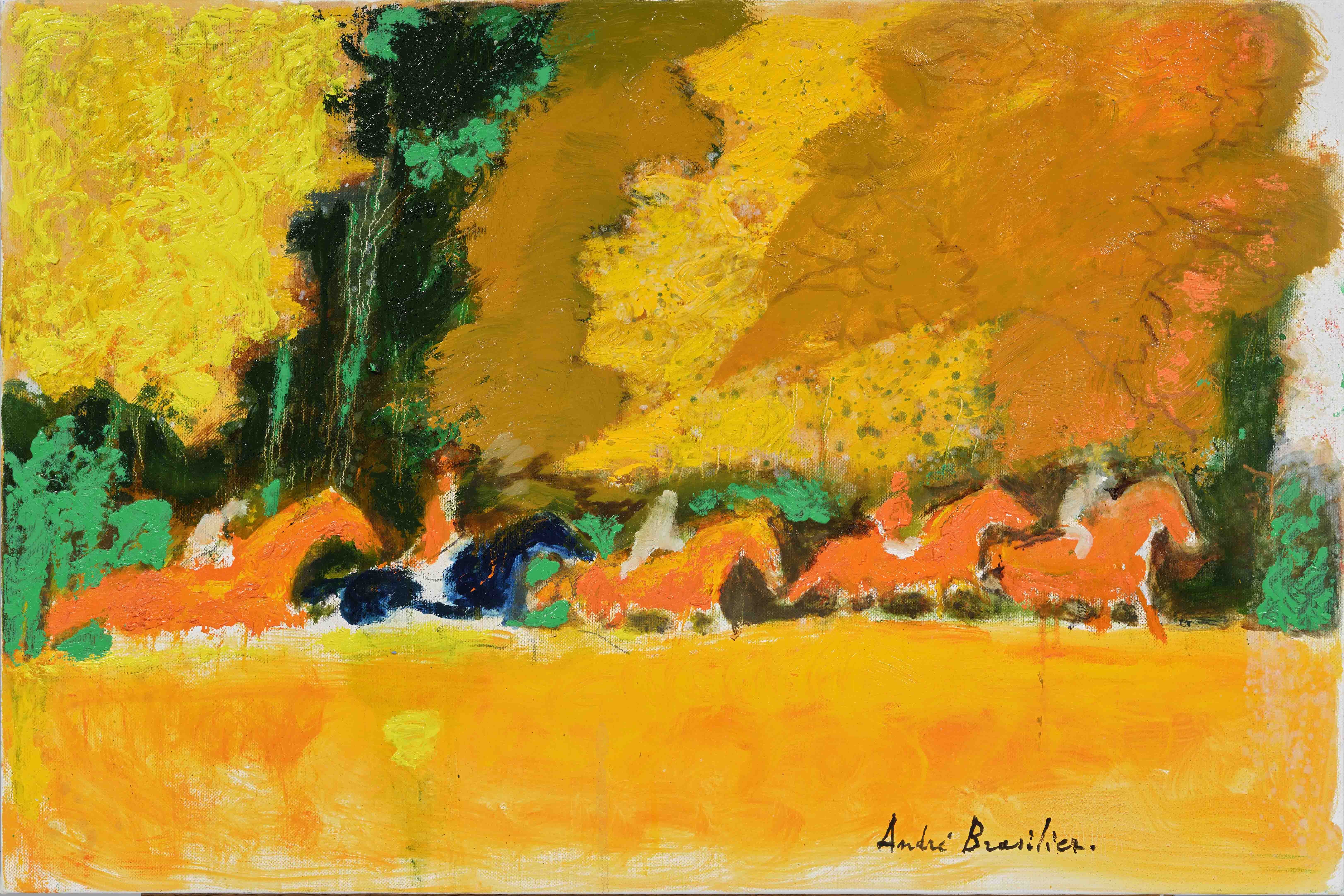 André Brasilier is a French painter, born in 1929 in Saumur, France, who studied at the Ecole des Beaux-Art in Paris. In 1952, he received the Florence Blumenthal Award and the Prix de Rome for painting the following year. He resided at the villa Medicis in Rome from 1954 to 1957. He currently lives and works in Paris.