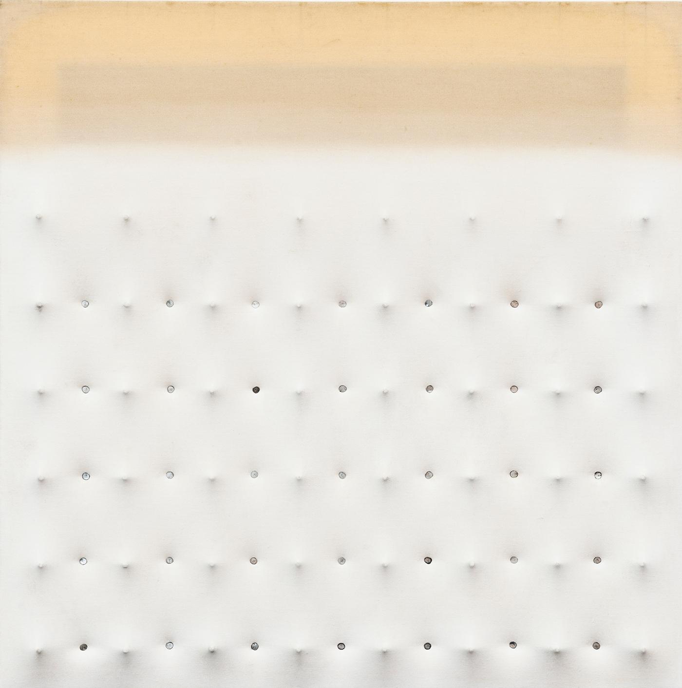 Associated with ZERO movement, Castellani is best known for his "paintings of light." His work sought to call attention to material and structure as he created monochromatic reliefs by driving nails into the underlying frames of his canvases at varying depths, and then painting on top in a single colour.