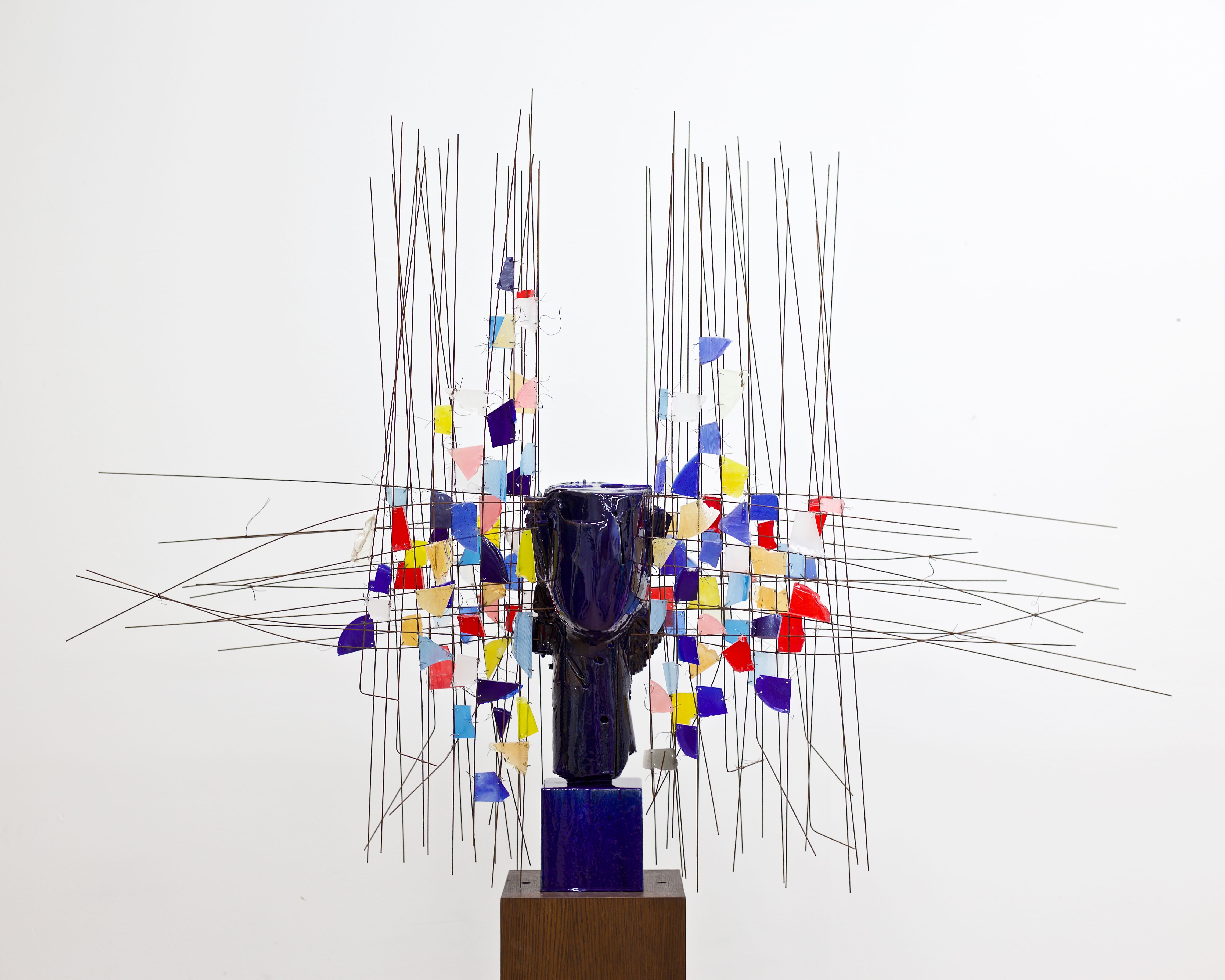 Manolo Valdés, Cabeza azul con resina roja, 2018