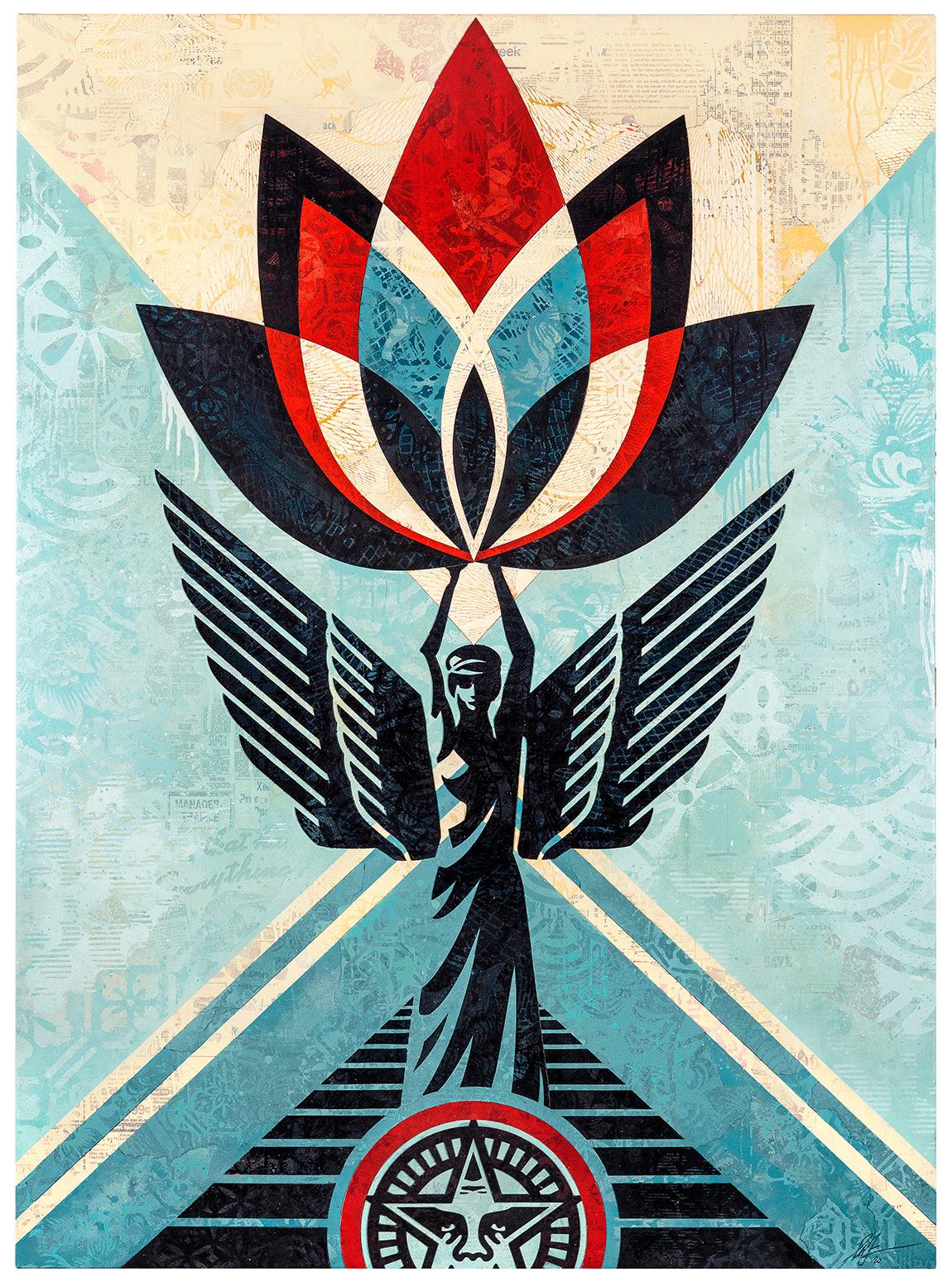 Born in 1970 in Charleston, South Carolina, Shepard Fairey is an American street artist, graphic designer, activist, illustrator, and founder of OBEY Clothing, who emerged from the skateboarding scene. He attended the Idyllwild Arts Academy in Palm Springs, California and first became known for his "Andre the Giant Has a Posse" (OBEY) sticker campaign while attending the Rhode Island School of Design, from which he earned his Bachelor of Fine Arts in 1992. He currently lives and works in Los Angeles, California.